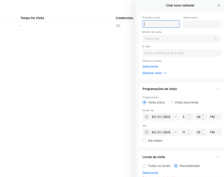 Os visitantes podem ser gerenciados com os agendamentos por data e os relatórios demonstram cada visita.